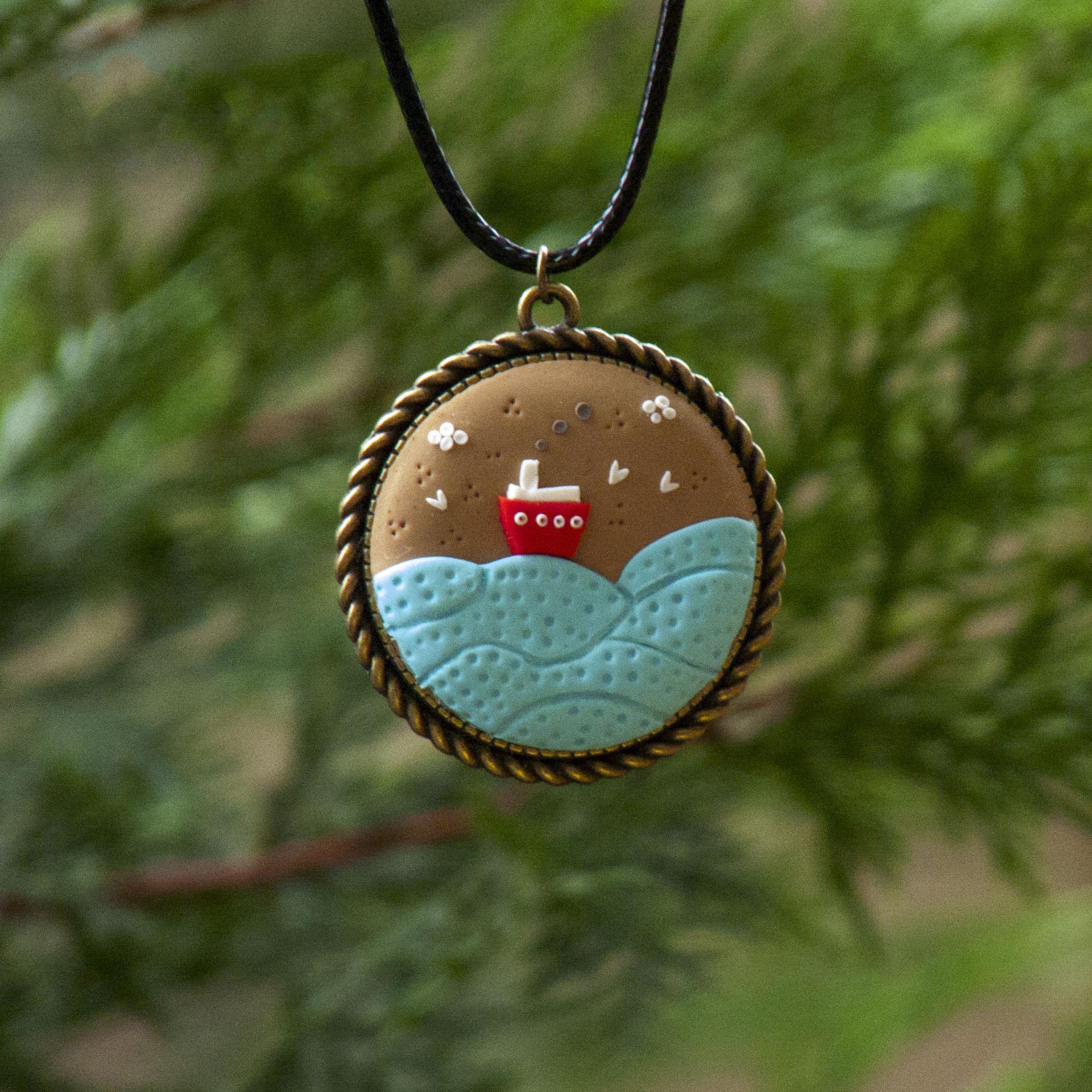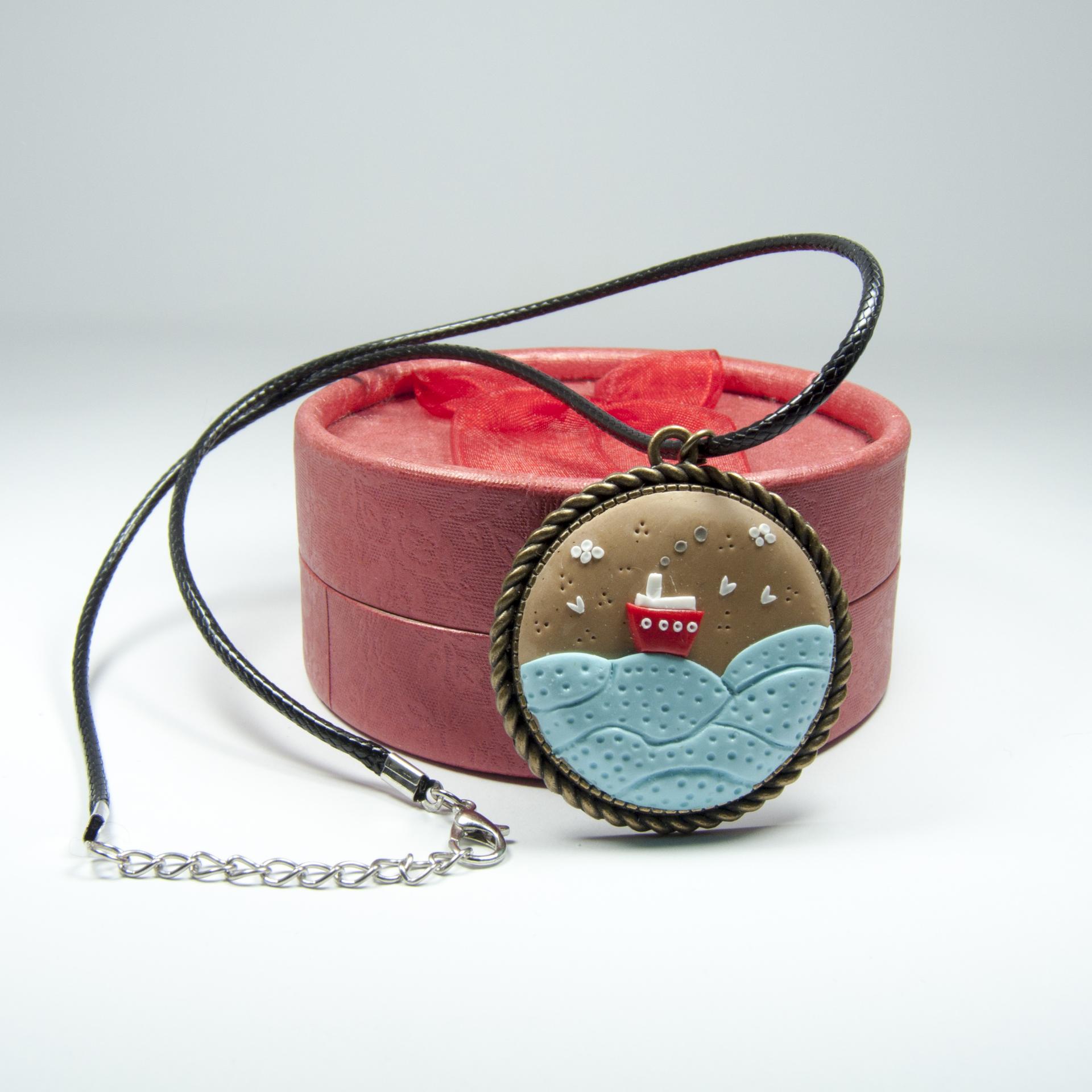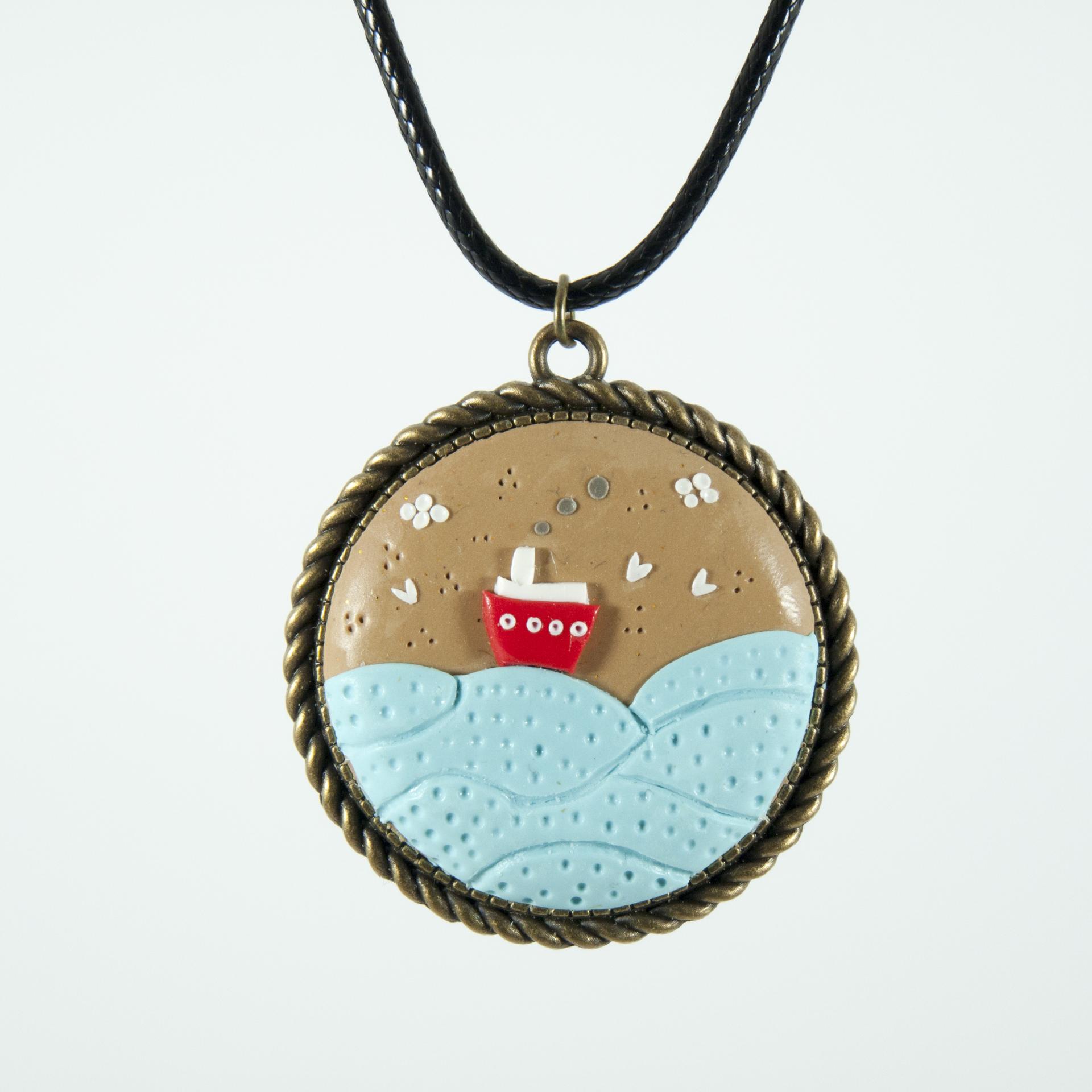 Medalionul cu bărcuță este unicat, lucrat în totalitate manual È™i poate fi un cadou minunat pentru cei veÈ™nic îndrăgostiÈ›i de mare È™i călătorie.